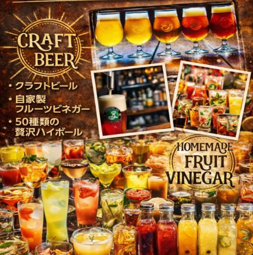 We always have 6 types of craft beer available.Among them, the Brooklyn Lager raw barrel is a cup that can only be tasted at our store in Shiga Prefecture / The fruit vinegar is pickled for 2 weeks and offers 10 different flavors at all times.Even for those who don't like sours, cocktails, and alcohol, it's popular with water and soda.