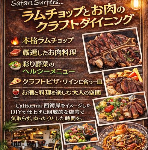 Based on the concept of the West Coast of the United States, we have created a space and cuisine that incorporates the culture we met through surfing.Please spend the best day in the stylish space created by the owner himself DIY!